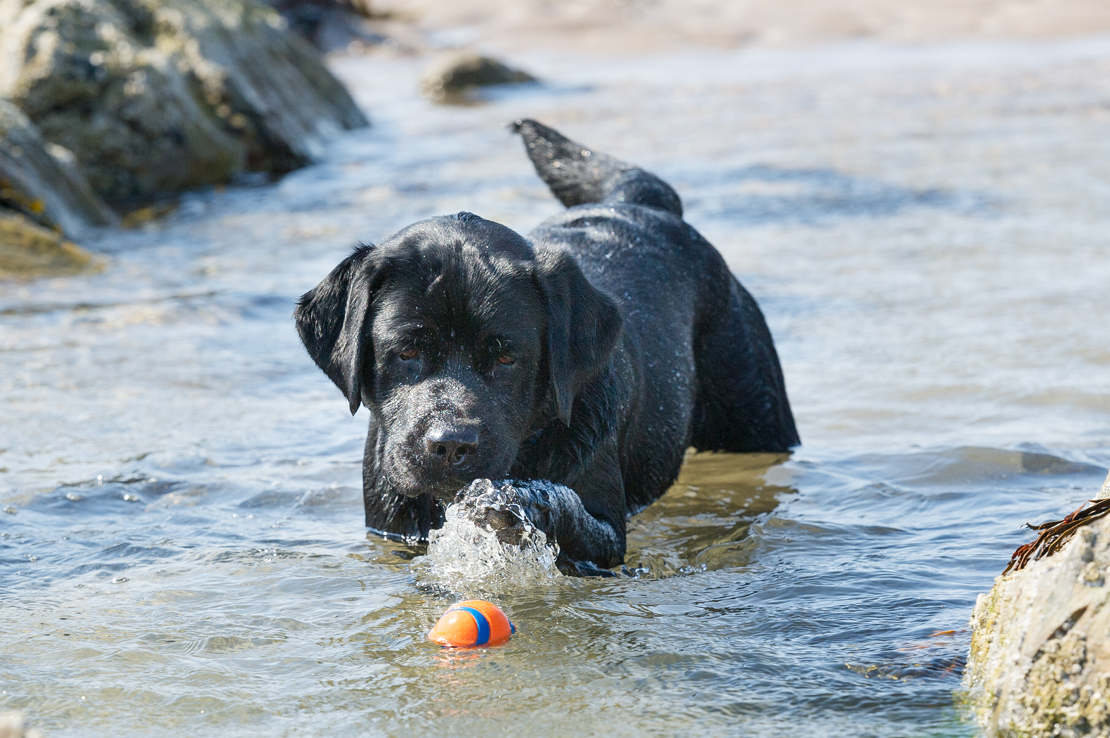 Dogs swimming, mainly my two Labradors "AJ" and "Bruar". Please click main image to open the gallery.